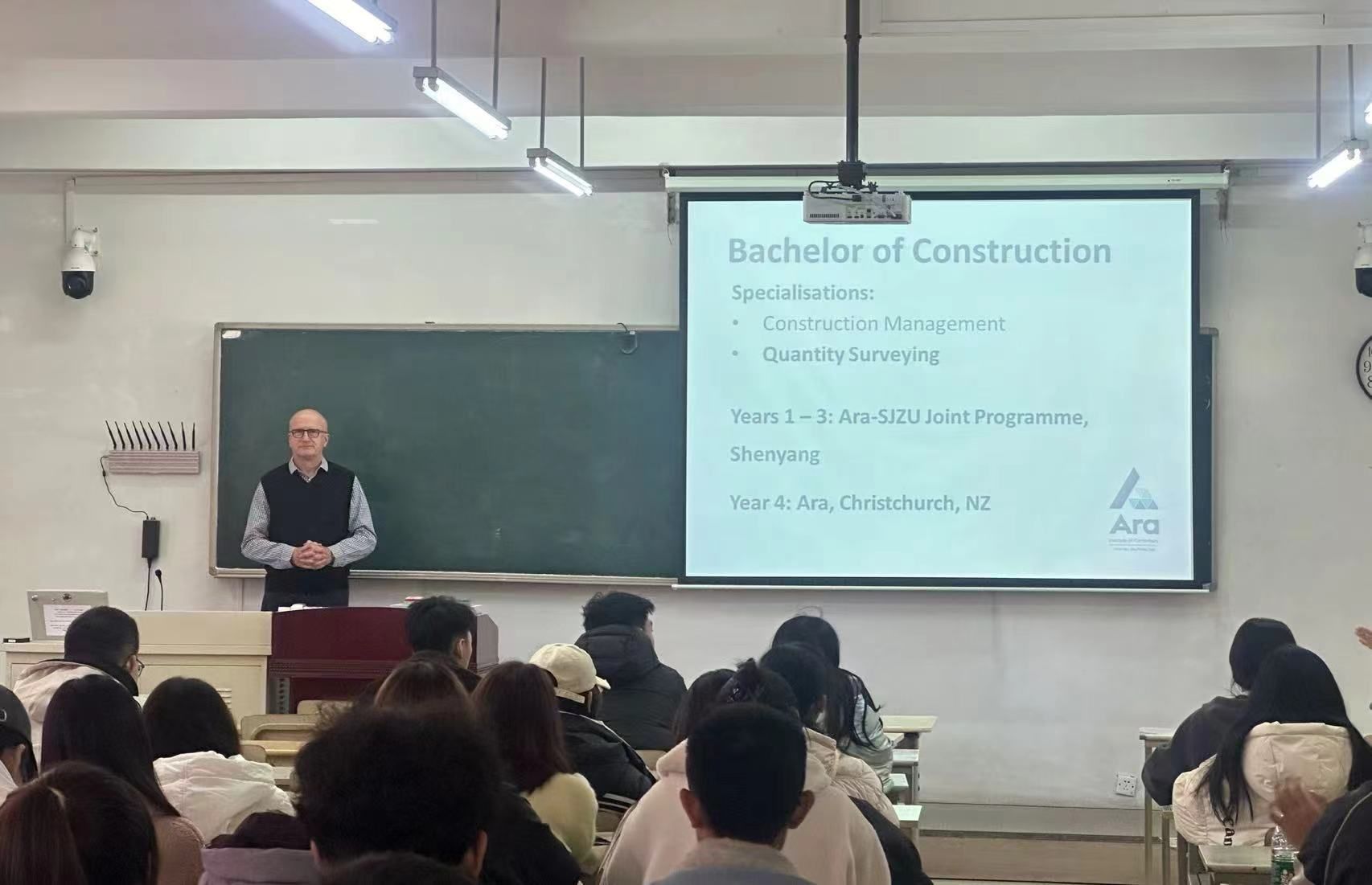 116日,伟德国际bevictor1946组织的“工程造价发展前景与方向”专题讲座在B1-403顺利举行,Ara工程造价系主任Keith Power作为主讲人,为2024级工程造价专业新生分析了行业发展方向与专业前景,并提供了宝贵的学业指导。